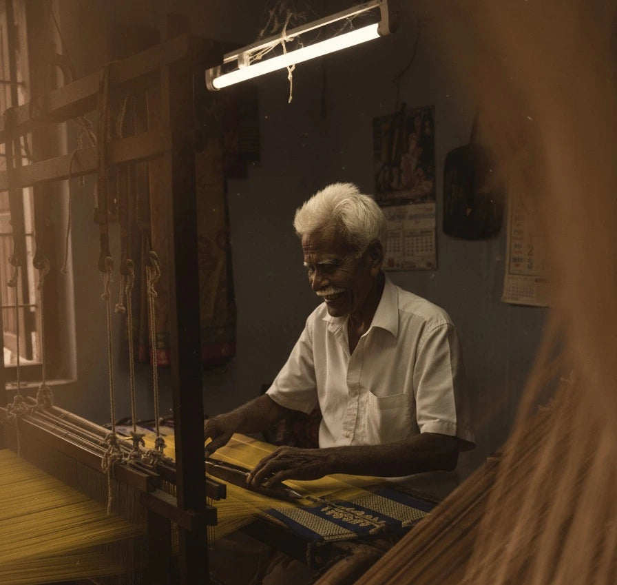 At 84, Chinnusami still crafts by hand on his single surviving loom — preserving a tradition that lives in every thread.